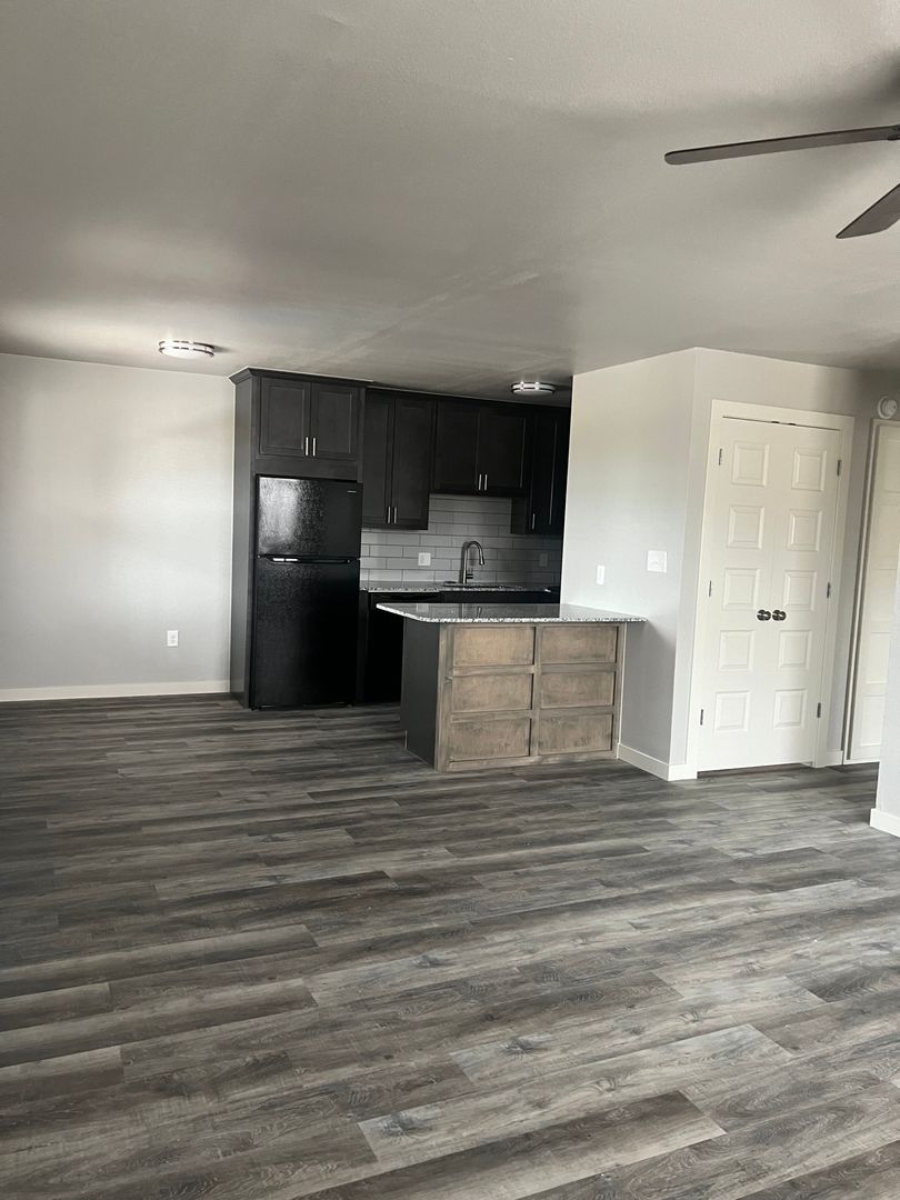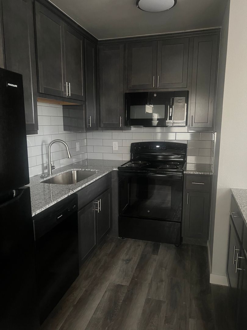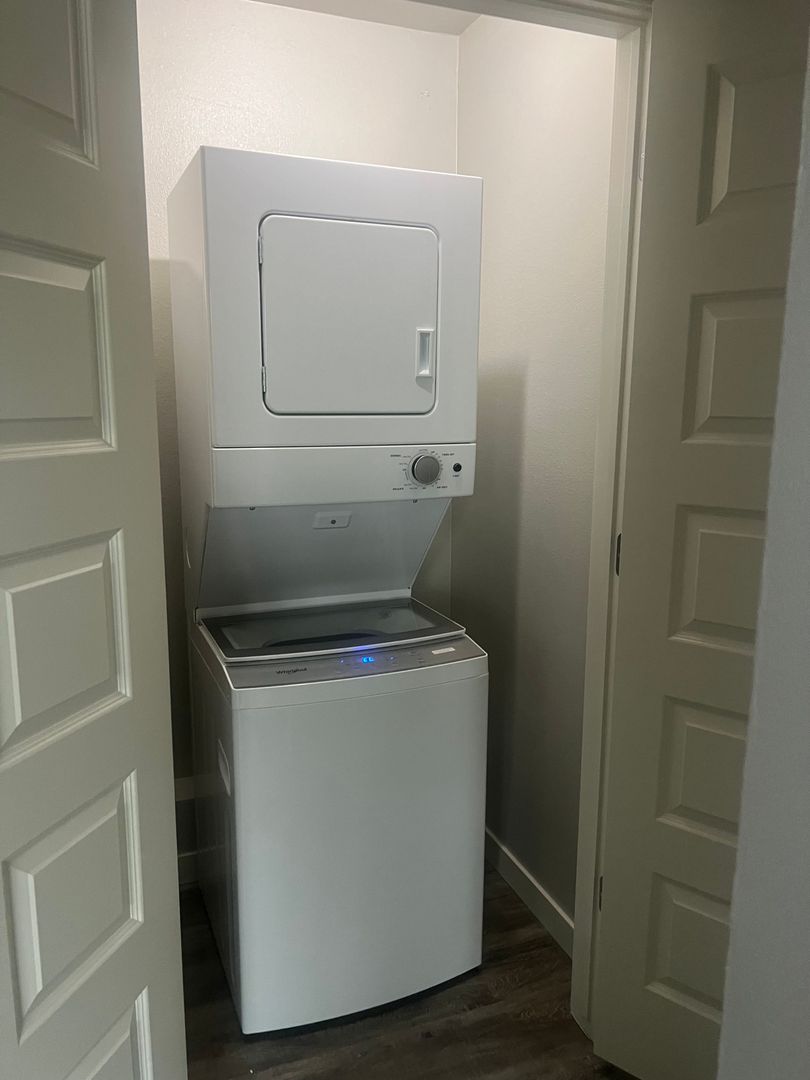 Newly remodeled 2 bed 1 bath apartment, refrigerator, range, dishwasher, microwave, stacked washer/dryer. Landscaped grounds with outside seating.