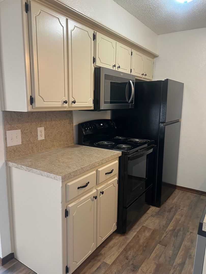 Newly remodeled! Great location! 1 bed 1 bath apartment including refrigerator, range, dishwasher and microwave. Laundry room on site. Great kitchen hard wood floors! Covered parking available